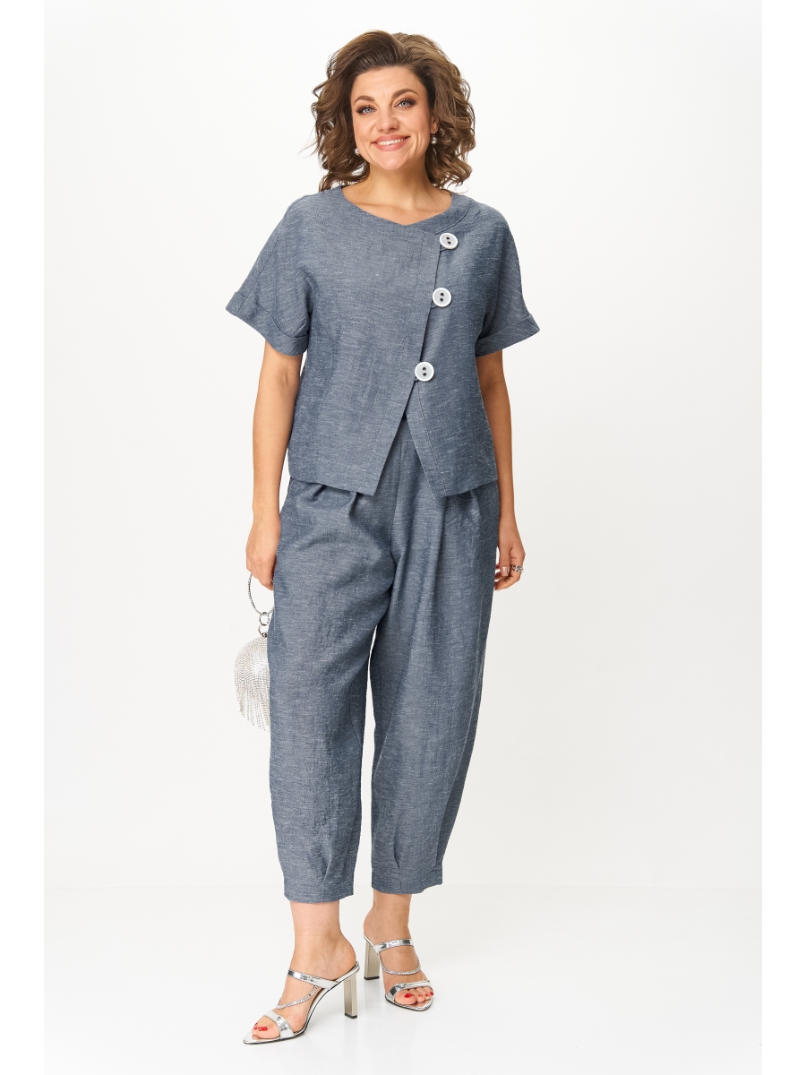Универсальный и удобный женский брючный костюм для любого повода, из мягкого материала с эффектом легкой мятости, что предает шарм изделию.