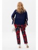 Брюки выполнены из костюмной ткани в яркий рисунок, садятся по фигуре, к низу заужены, спереди на молнии с гульфиком, высокая посадка, в обтачку пояса вставлена резинка, длина 7/8, от пояса к боковым швам косые карманы.