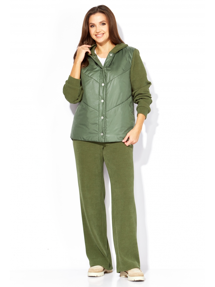 Комплект женский, 2-х предметный, состоящий из куртки и брюк, выполнен из двух видов ткани- плащевка на синтепоне и вельвет на трикотажной основе.