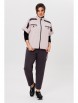 Жилет прямого силуэта, длиной до бедер, со спущенным плечом, воротником-стойкой и центральной застежкой на тесьму-молнию. Перед с плечевыми кокетками, отделочными вставками контрастного цвета и нагрудными клапанами с контрастной отделкой и пуговицами. Спинка с плечевой кокеткой и отделочной вставкой контрастного цвета. Спинка со средним швом. Пройма с притачной широкой манжетой. Низ жилета фигурный с отделочной бейкой.