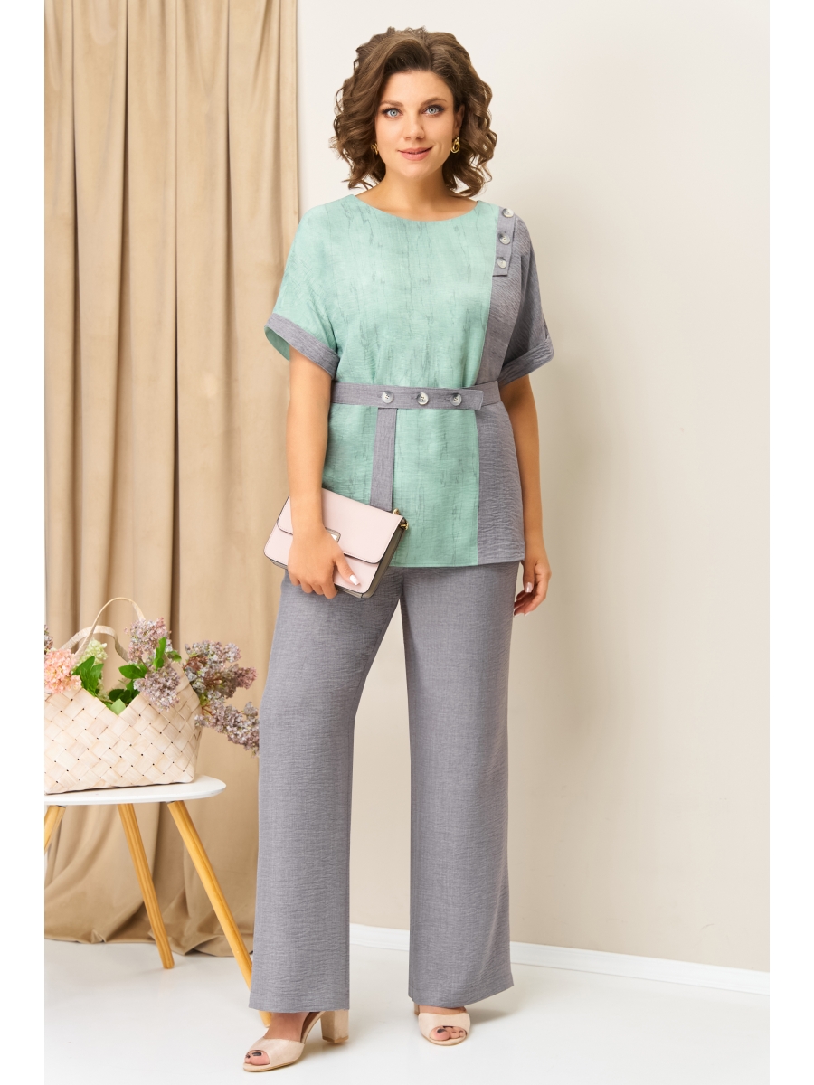 Комплект-двойка из легкого текстиля: комбинированная блуза и брюки свободного силуэта. Рукав блузы на цельнокроеной основе.