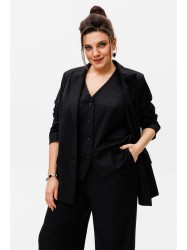 Этот костюм - это шик и универсальность. Жакет бойфренда сочетает в себе элегантность и комфорт, прямые брюки придают вам стройность и уверенность, а жилет завершает образ, добавляя нотку роскоши, брюки на резинке. Все это - актуальная классика, которая никогда не выйдет из моды.