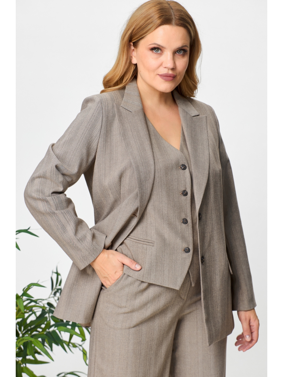 Этот костюм - это шик и универсальность. Жакет бойфренда сочетает в себе элегантность и комфорт, прямые брюки придают вам стройность и уверенность, а жилет завершает образ, добавляя нотку роскоши. Все это - актуальная классика, которая никогда не выйдет из моды.