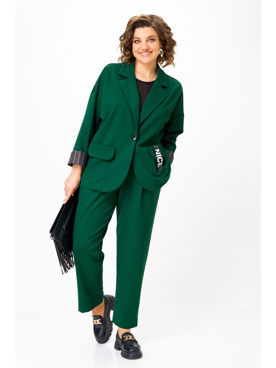 Костюм, который подчеркивает вашу уверенность и женственность. Плотный трикотаж с добавлением нейлона делает его пластичным и износостойким — он держит форму и смотрится дорого в любой ситуации. Богатый изумрудный оттенок словно создан, чтобы добавить выразительности в повседневность, а изящная отделка текстилем и контрастные детали превращают образ в по-настоящему уникальный.