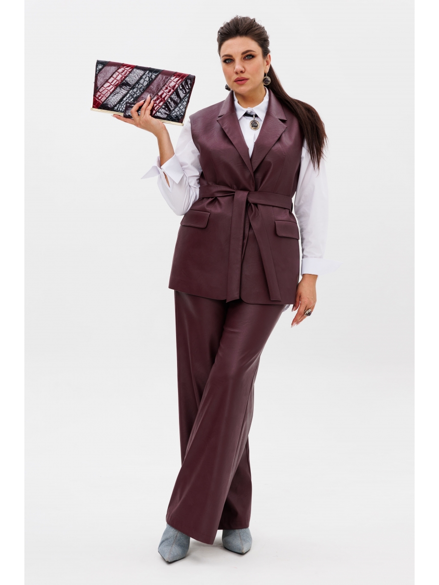 На модели в костюме цвета «портвейн роял» белая рубашка 1203.1 и голубой джемпер 1509.