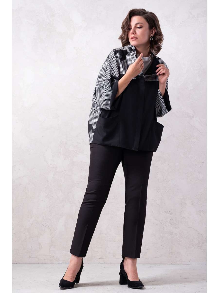 Жакет оверсайз, ткань костюмно-плательная средней плотности. Изделие без подклада. Рукав цельнокроенный, длина 7/8. Потайная застежка спереди на пуговицы, на переде удобные карманы.