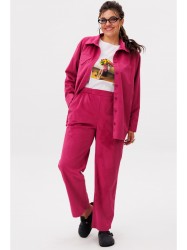 Мягкий вельвет, нежный на ощупь, обволакивает теплом и создает ощущение безмятежности, будто облачая вас в легкую дымку уюта. Сочетание насыщенного малинового и нежного лавандового оттенков придает образу глубину и выразительность.