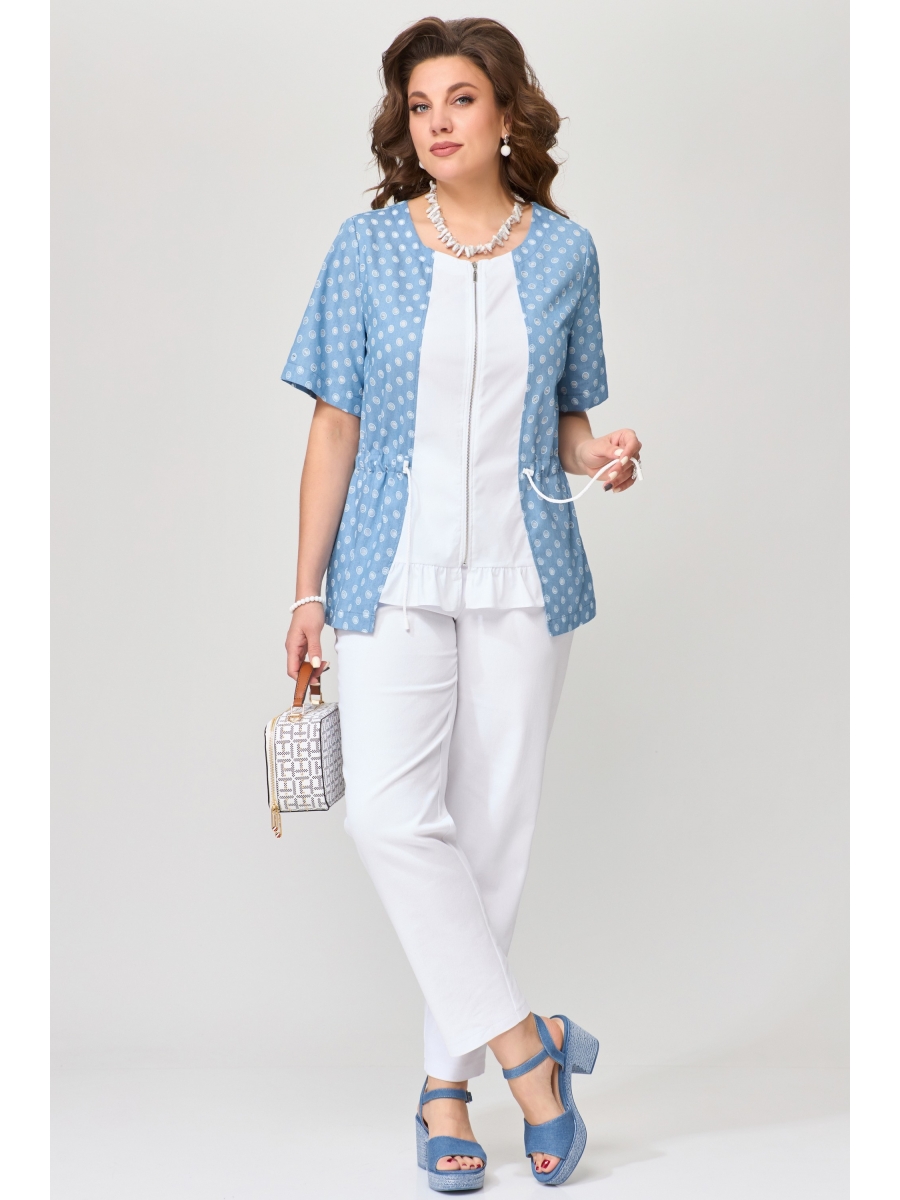 Женский комплект ХАЙДА состоит из блузки и брюк (джинс), выполнен из тонкой джинсовой ткани.