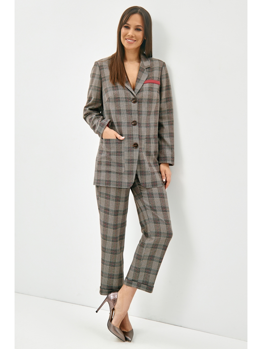 Стильный комплект, состоящий из жакета и брюк из мягкой костюмной ткани со легким стрейчем.