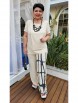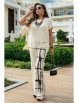 Шикарный летний женский костюм, состоящий из блузы и прямых брюк.
