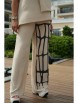 Брюки прямого силуэта, свободные. Пояс в брюках притачной на резинке, которая обеспечивает максимально комфортную посадку на любой тип фигуры. В качестве дополнительного декоративного элемента по переду брюк – дизайнерская печать.