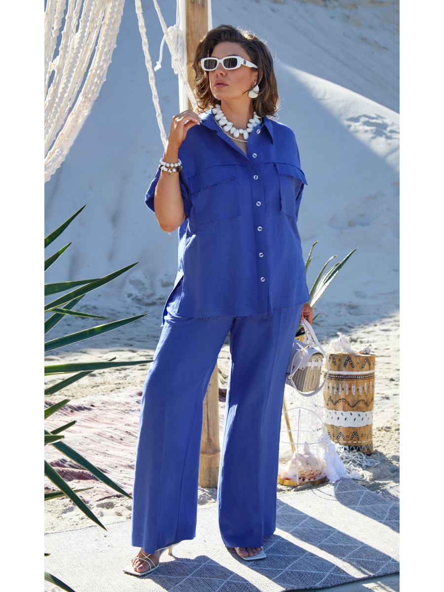 Костюм женский двух-предметный, состоящий из блузки и брюк.