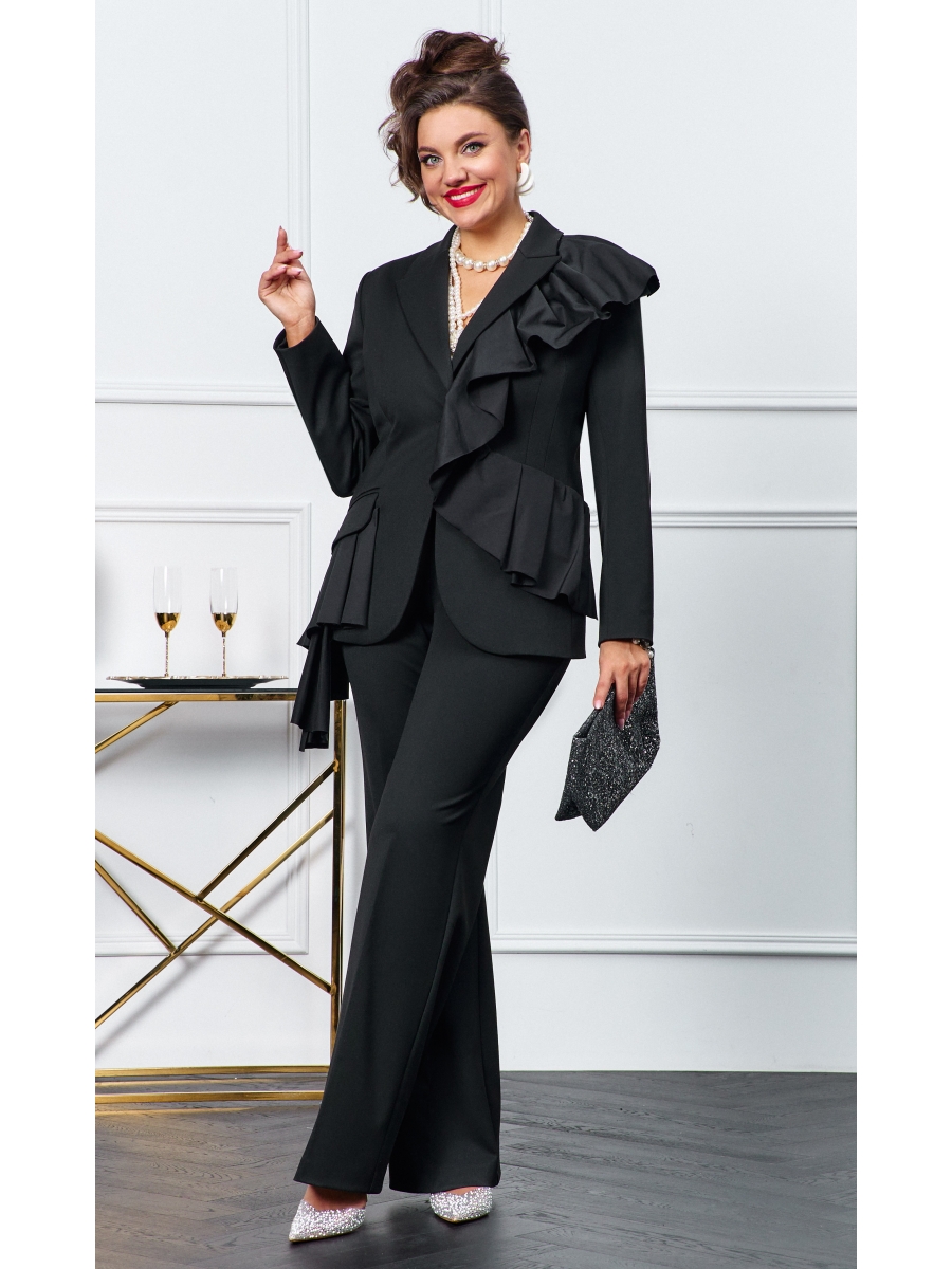 Феерический черный костюм, состоящий из жакета и брюк, – удачный выбор для торжественного события, когда хочется выглядеть строго, дерзко и роскошно одновременно!