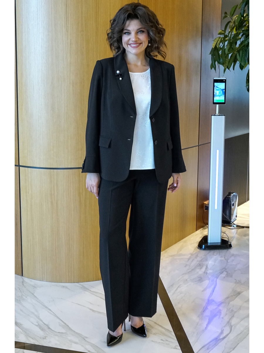 Брючный костюм 2381 черный, молоко, AlaniCollection – купить с доставкой в Санкт-петербурге на peterburg.belpodium.ru