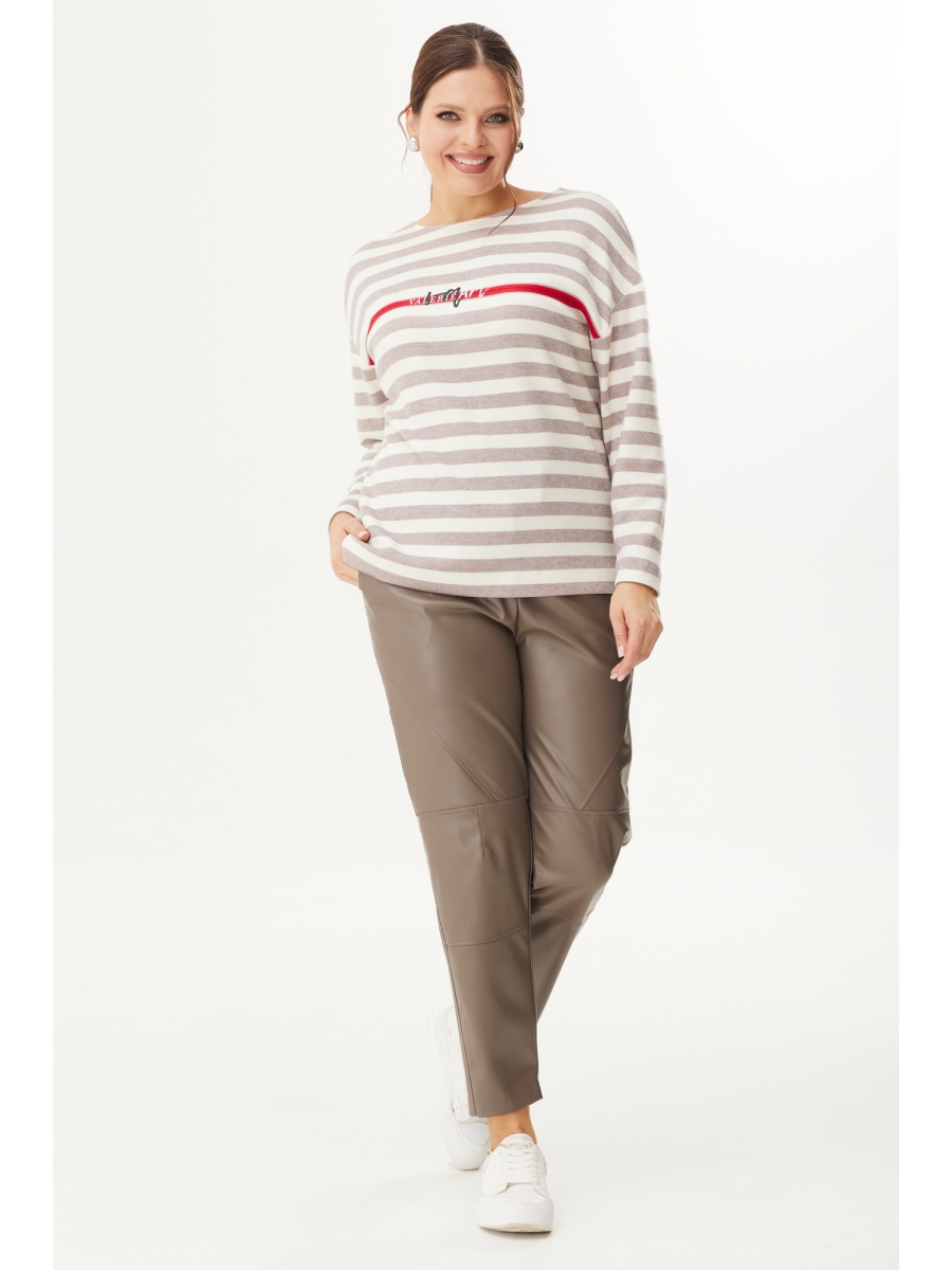 Джемпер свободного кроя, рукав слегка спущен. Горловина с округлым вырезом. Выполнен из приятного к телу трикотажного полотна средней плотности. Принт в полоску.