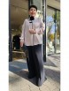 Шикарный женский костюм, состоящий из блузки и широких длинных брюк.