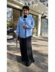 Шикарный женский костюм, состоящий из блузки и широких длинных брюк.