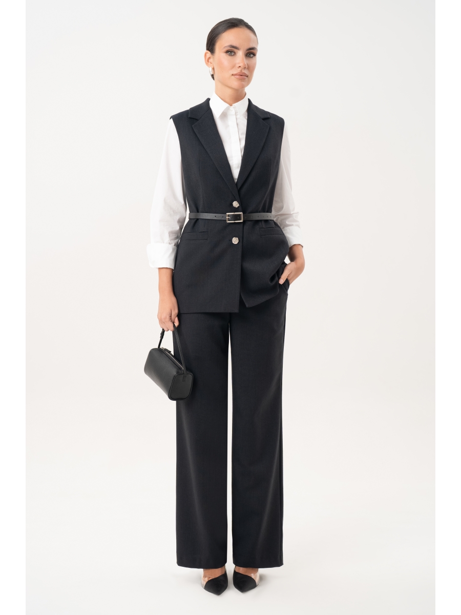 Женский брючный костюм с жилетом URS – это современное воплощение элегантности и делового стиля, которое идеально подойдёт для уверенных женщин, ценящих строгий силуэт и комфорт. Такой костюм двойка с жилетом станет универсальной основой гардероба, позволяя создавать безупречные офисные образы и стильные повседневные комплекты. Костюм женский предназначен для повседневной носки. Костюм состоит из жилета на подкладке полуприлегающего силуэта и прямых брюк, в комплект к костюму идет ремень (фурнитура на изделии может незначительно отличаться от фото).
