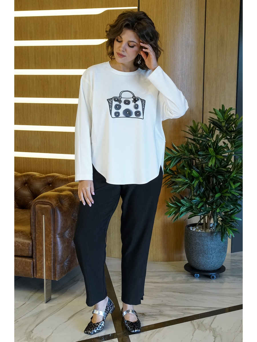 Брючный костюм 2418 молоко+черный, AlaniCollection – купить с доставкой в Санкт-петербурге на peterburg.belpodium.ru