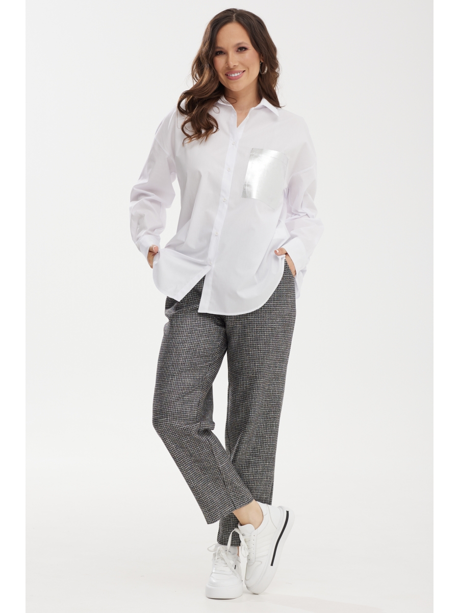 Брючный костюм 2458 белый+серый, Магия Моды – купить с доставкой в Санкт-петербурге на peterburg.belpodium.ru