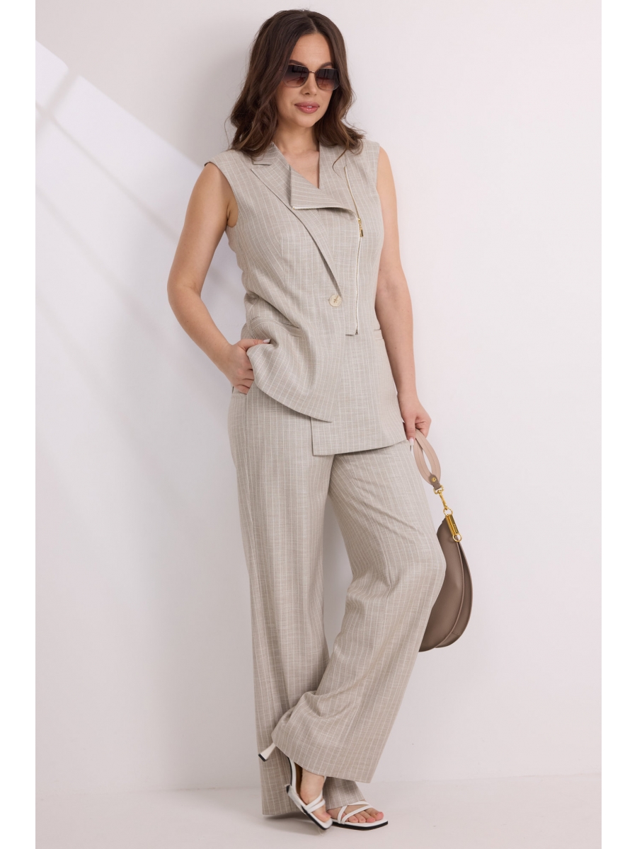 Жилет полуприлегающего силуэта с оригинальной застежкой на косую молнию и пуговицу. Перед жилета на хлопковой подкладке. Низ жилета ассиметричный.