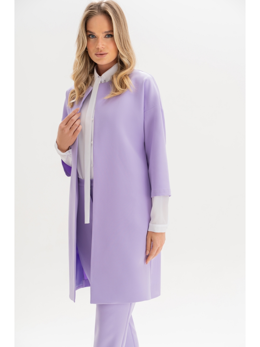 Кардиган женский без застёжки, с подкладкой по переду, в боковых швах обработаны карманы. Спинка со средним швом. Горловина круглой формы, обтачная. Рукава втачные одношовные, со спущенной линией плеча, длиной 3/4. По низу рукава прострочена отделочная строчка. Рукав без подкладки.