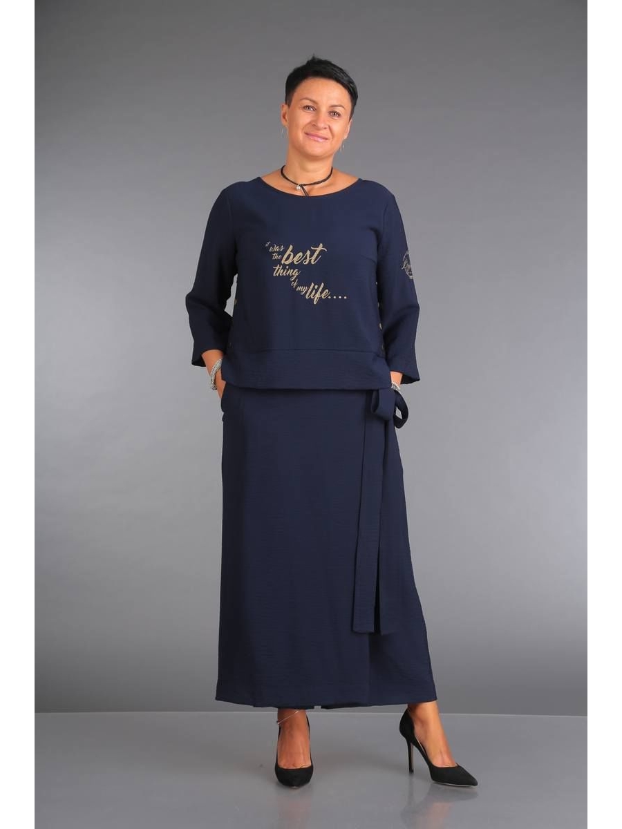 Блуза свободного силуэта до талии. По переду две нагрудные вытачки,низ дополнен широкой манжетой. По центру полочка декорирована печатью. Спинка с кокеткой две плечевые вытачки. Нижняя часть со сборкой по верху. Горловина круглая, обработана руликом. Рукав втачной длина может быть ¾ или короткий. Боковые швы выполнены в виде отлетной шлицы с декоративной застежкой на кнопки.
