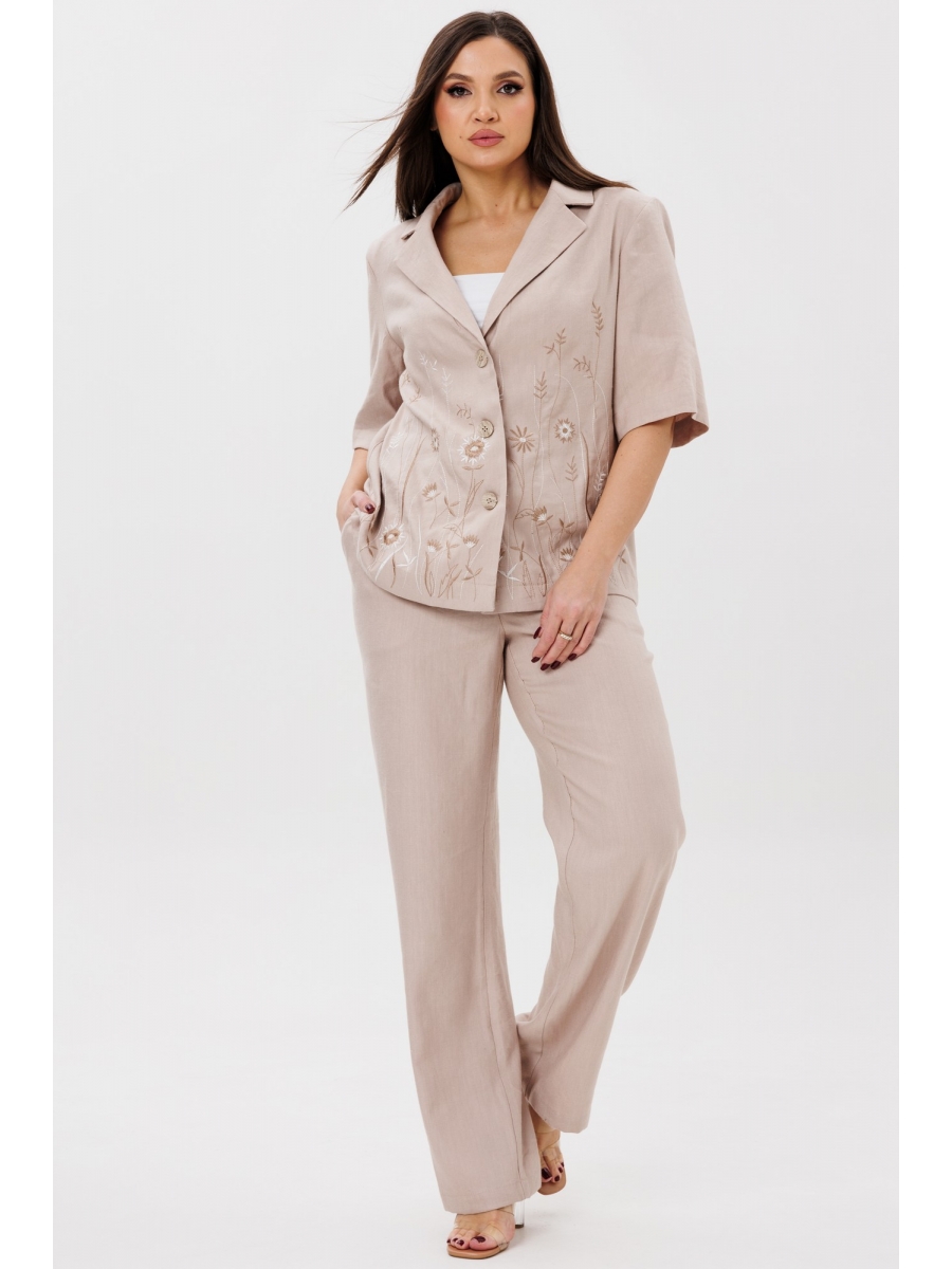 Шикарный льняной двухпредметный костюм Ma Cherie, состоящий из жакета и брюк.