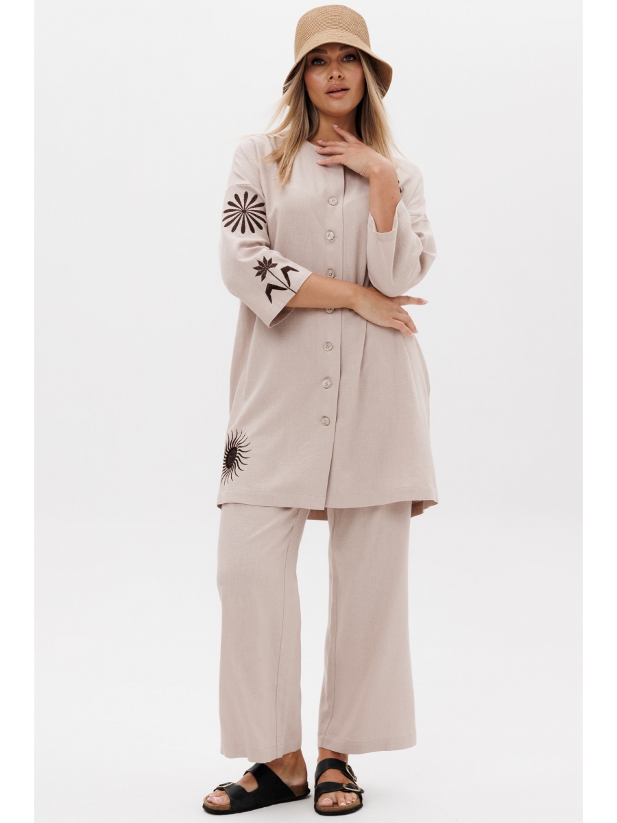 Стильный льняной костюм Ma Cherie в свободном стиле, состоящий из туники и брюк.