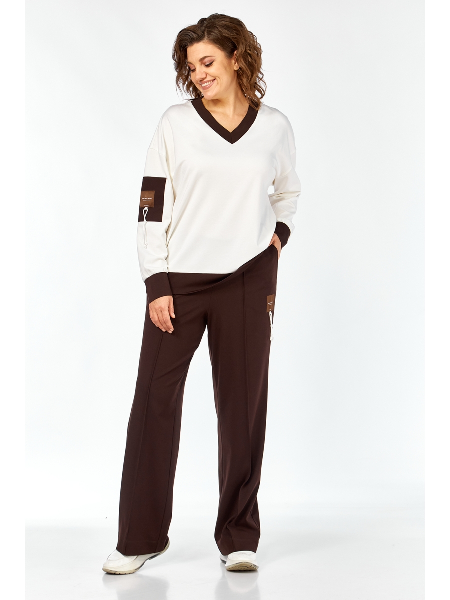Костюм брючный двухпредметный, повседневный, состоит из джемпера и брюк. Выполнен из трикотажного полотна.