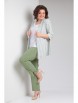 Жакет полуприлегающего силуэта с центральной бортовой застёжкой на две петли и пуговицы. На переде обработаны рельефные швы и внутренние карманы с листочкой. Спинка со средним швом и талиевыми вытачками. Рукав втачной, длиной ¾, с отложной манжетой. Горловина обработана английским воротником.