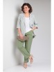 Брюки прямые, на притачном поясе с пуговицей и резинками в районе боковых швов. На передних половинках обработаны функциональные карманы. В боковых швах по низу брюк небольшие разрезы.