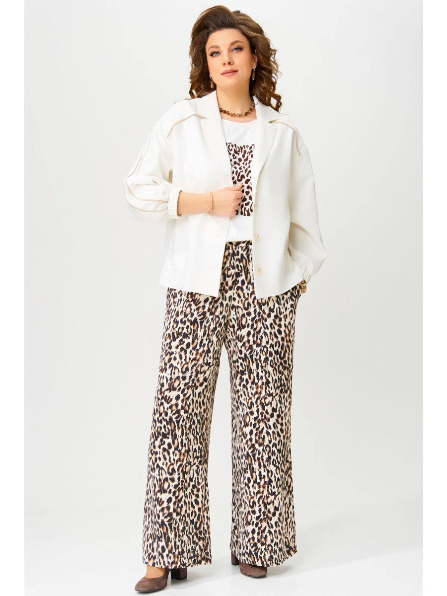 Джемпер прилегающего силуэта. По груди вытачка. Горловина обработана планкой. На полочке печать ""Леопард"". Рукав втачной одношовный. Низ джемпера и рукава обработан распошивалкой.