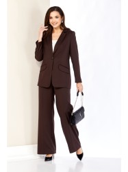Брючный костюм, представленный в однотонном исполнении, станет универсальным вариантом для офиса а также на повседневный выход.