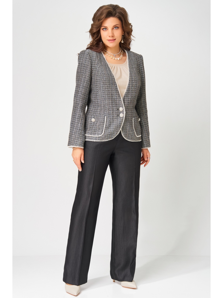 ""Ясиня"" — нарядная тройка, которая легко впишется в повседневность. Жакет, брюки и джемпер создают элегантный образ, подходящий как для торжеств, так и для рабочих будней. Стиль, комфорт и женственность — в каждой детали.