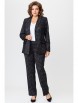 Брюки прямые, классические, с заутюженными стрелками, по переду обработаны карманы с отрезным бочком, застежка на тесьму-молнию и 1 пуговицу. На задних половинках обработаны вытачки и имитация карманов с листочкой, пояс в брюках притачной.