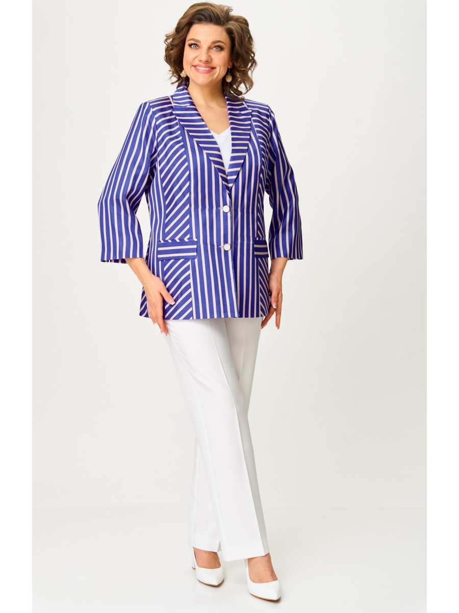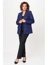 Жакет удлиненный, полуприлегающего силуэта с центральной бортовой застежкой на пуговицы до линии перегиба лацкана. Спереди рельефные швы от плечевого шва, отрезной бочок и карман с клапаном. Спинка с рельефами от плечевого шва. Рукав втачной, двухшовный. Воротник пиджачного типа. Жакет на подкладке.