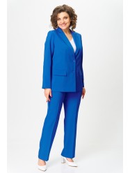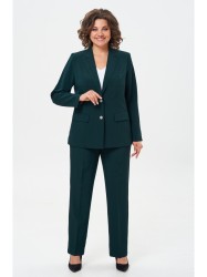 Брюки прямые, классические, с заутюженными стрелками, по переду обработаны карманы с отрезным бочком, застежка на тесьму-молнию и 1 пуговицу. На задних половинках обработаны вытачки и имитация карманов с листочкой, пояс в брюках притачной.