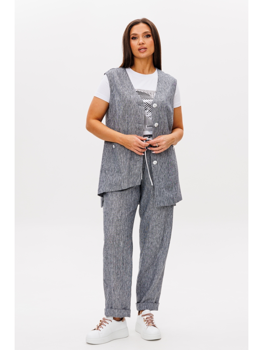 Стильный и актуальный образ - жилет на базовую футболку плюс брюки в расслабленном стиле. Практичный и удобный - это лучший вариант для летней жары.
