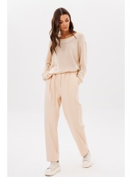 Спокойная палитра: В вашем распоряжении молочно-белый и теплый оттенок бежевого. Хочется быть собой, никуда не торопиться. Эта невероятная модель комплекта сохраняет равновесие в образе, хотя в ней есть и скрытая чувственность и внутренний аристократизм.
