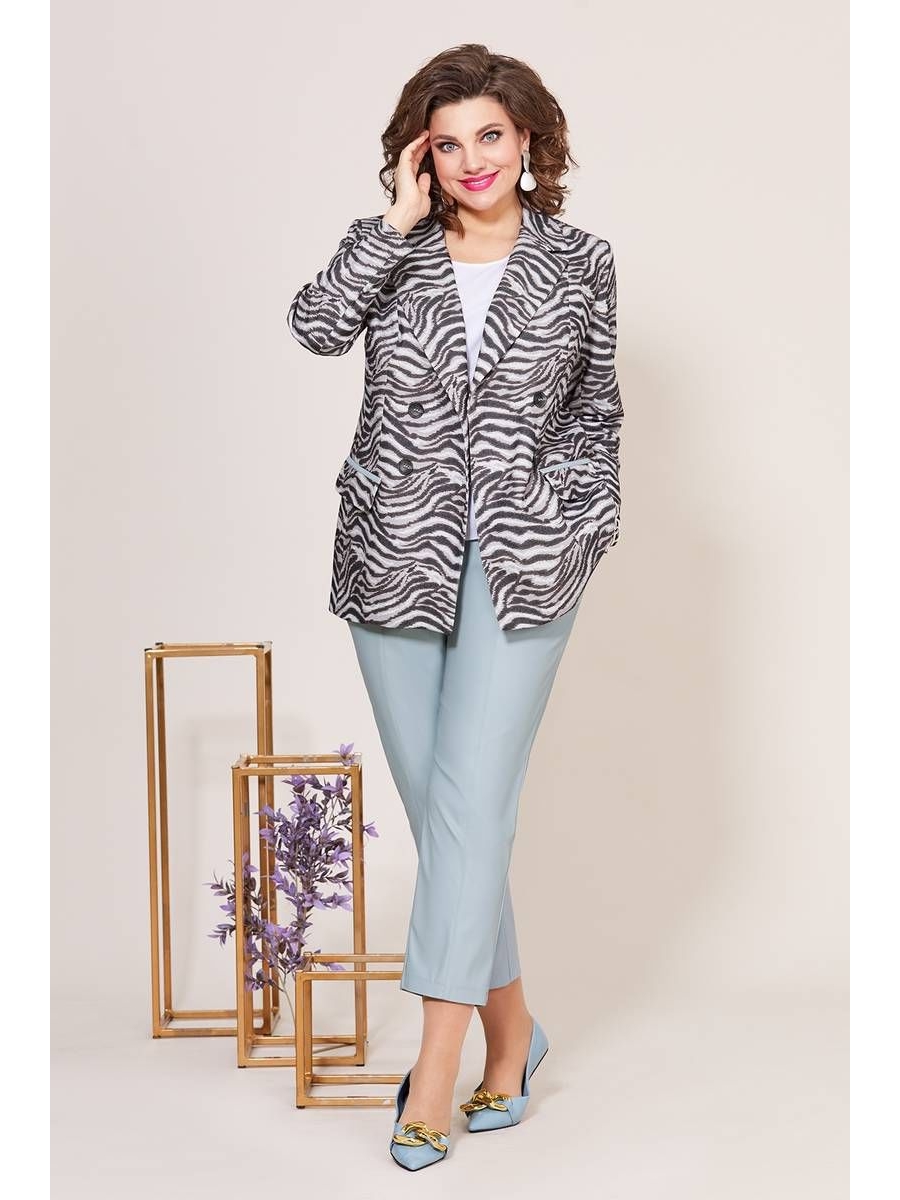 Трех-предметный комплект, состоит из блузы, брюк и пиджака.