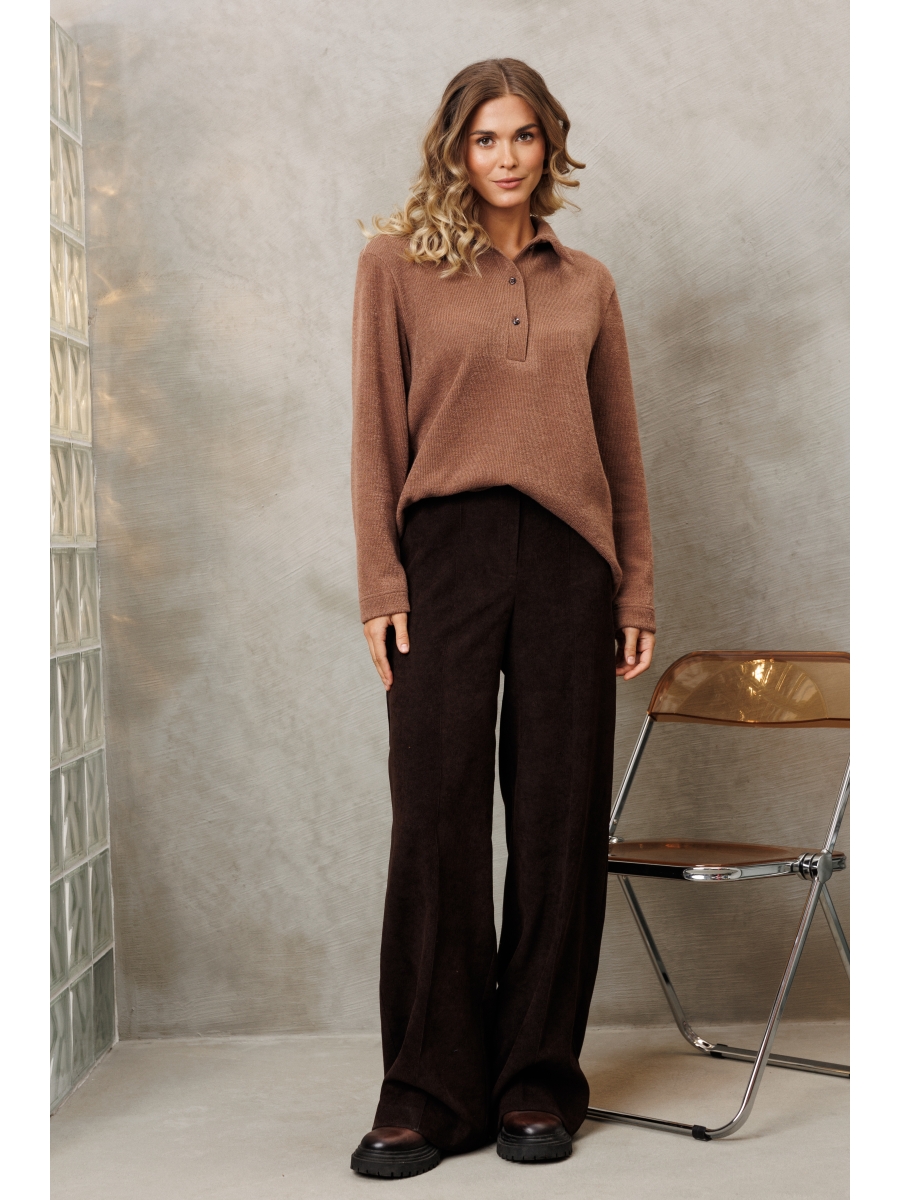 Джемпер прямого силуэта с воротником поло из теплого трикотажного полотна. Рукав втачной одношовный.