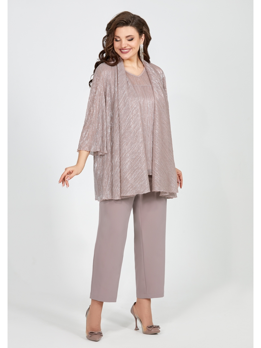 Женский комплект, состоит из трех предметов, выполнен из плиссированной ткани и текстиля.