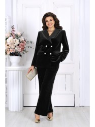 Этот костюм — воплощение классики вечерней моды и станет незаменимым вариантом для женщин, которые ищут стильный и одновременно комфортный наряд на торжество. Воротник и лацканы из сатина придают изделию утонченный и благородный вид, что делает его подходящим для новогоднего корпоратива, свадьбы или юбилея. Высококачественные материалы и продуманное лекало обеспечивают не только привлекательный внешний вид, но и максимальный комфорт. Такой костюм идеально подойдет для полных женщин, которые ценят элегантность и удобство.