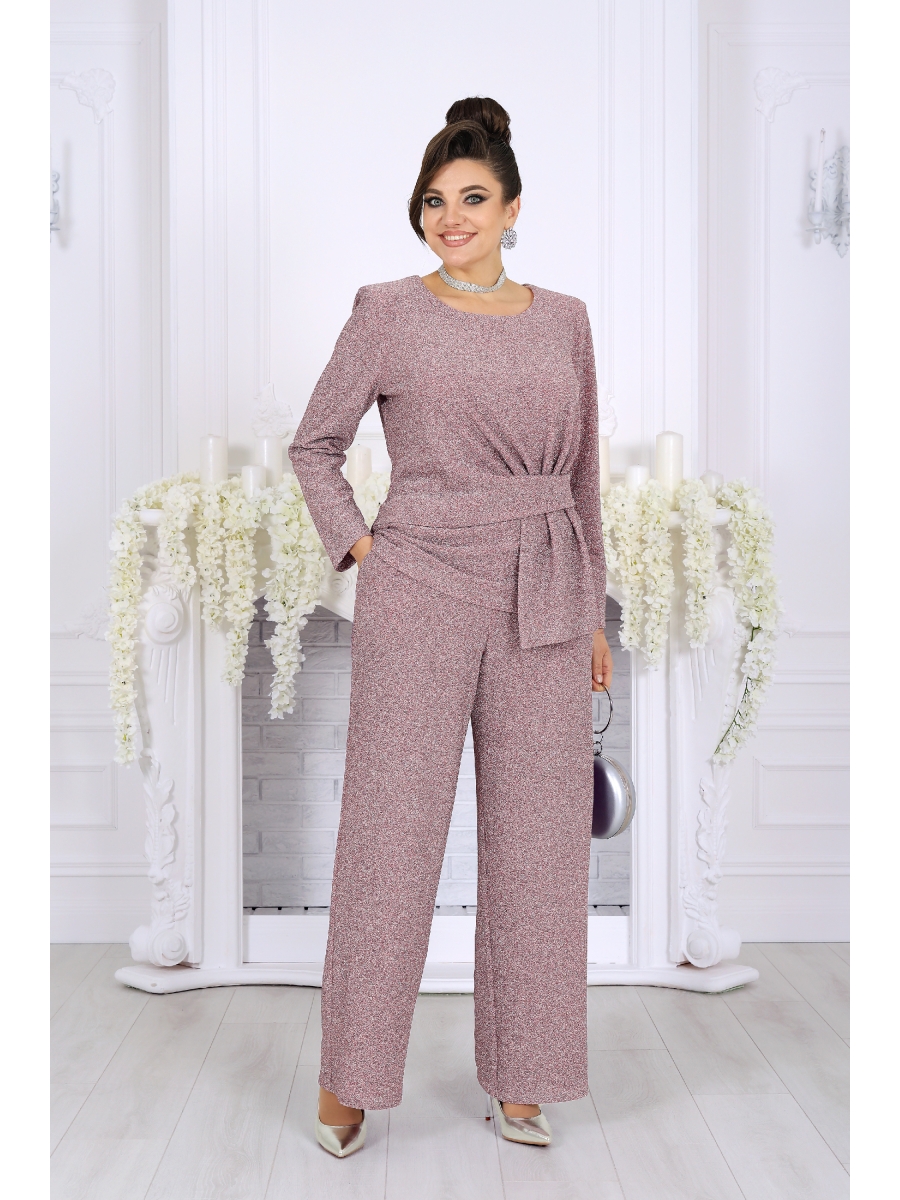 В этом костюме каждая деталь продумана так, чтобы создавать ощущение безупречного стиля и лёгкой роскоши. Мягкое мерцание люрекса делает образ выразительным и дорогим, а утончённый крой подчёркивает женственность и гармонию силуэта.