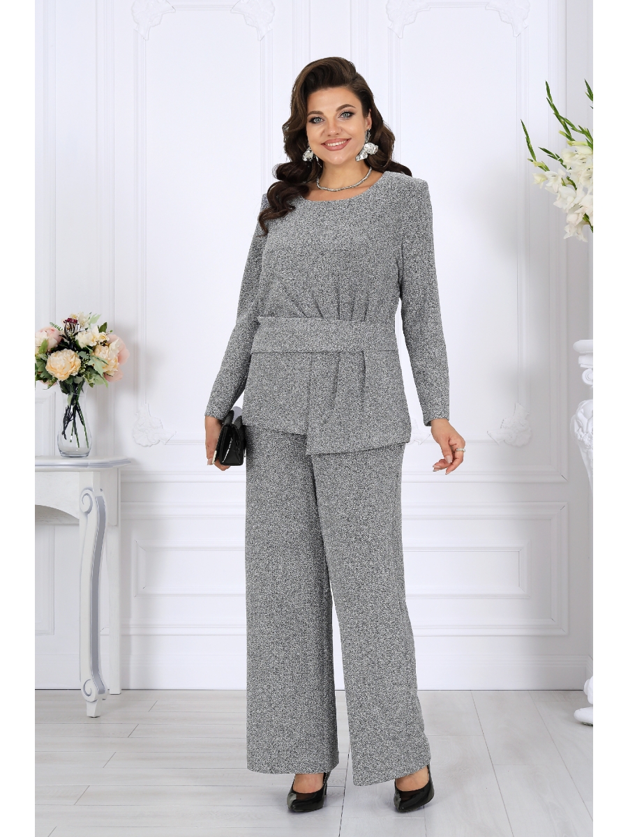 В этом костюме каждая деталь продумана так, чтобы создавать ощущение безупречного стиля и лёгкой роскоши. Мягкое мерцание люрекса делает образ выразительным и дорогим, а утончённый крой подчёркивает женственность и гармонию силуэта.
