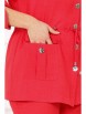 Жакет прямого силуэта, с центральной бортовой застежкой с отрезными планками на 7 петель и 7 пуговиц, со стояче-отложным воротником с отрезной стойкой. Длина изделия по середине спинки 73 см от шва втачивания воротника в горловину. Перед с нагрудными вытачками, выходящими из пройм. В нижней части переда настрочены накладные карманы, с имитацией бантовой складки посередине кармана и клапаны, застегивающиеся на 1 петлю и 1 пуговицу. По спинке и частично по переду настрочена кулиса, в которую втянут шнур. Для регулировки сборки по кулисе на шнур продеты фиксаторы, концы шнура оформлены наконечниками. Рукава втачные, одношовные, с притачными манжетами, застегивающимися на 1 петлю и 1 пуговицу, с разрезами в нижних швах рукавов, с настрочными патами, застегивающимися на 1 петлю и 1 пуговицу. Длина рукава с манжетой 62 см. Длина рукава может регулироваться с помощью паты. Жакет с плечевыми накладками.