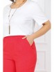 Брюки с посадкой на талии, зауженные к низу, на притачном поясе с резинкой вдоль всего пояса. На передних половинках брюк расположены наклонные боковые карманы.