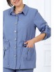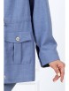 Жакет прямого силуэта, с центральной бортовой застежкой с отрезными планками на 7 петель и 7 пуговиц, со стояче-отложным воротником с отрезной стойкой. Длина изделия по середине спинки 73 см от шва втачивания воротника в горловину. Перед с нагрудными вытачками, выходящими из пройм. В нижней части переда настрочены накладные карманы, с имитацией бантовой складки посередине кармана и клапаны, застегивающиеся на 1 петлю и 1 пуговицу. По спинке и частично по переду настрочена кулиса, в которую втянут шнур. Для регулировки сборки по кулисе на шнур продеты фиксаторы, концы шнура оформлены наконечниками. Рукава втачные, одношовные, с притачными манжетами, застегивающимися на 1 петлю и 1 пуговицу, с разрезами в нижних швах рукавов, с настрочными патами, застегивающимися на 1 петлю и 1 пуговицу. Длина рукава с манжетой 62 см. Длина рукава может регулироваться с помощью паты. Жакет с плечевыми накладками.