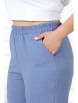 Брюки с посадкой на талии, зауженные к низу, на притачном поясе с резинкой вдоль всего пояса. На передних половинках брюк расположены наклонные боковые карманы.